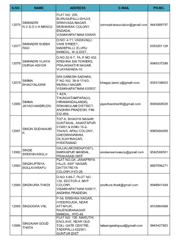 S.NO. NAME ADDRESS E-MAIL PH.NO.