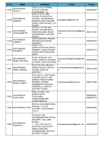 12205 OFF: FLAT NO.101, sivaprasadyadavalli@gmail.com 9493924259