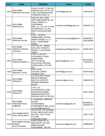 S.NO. NAME ADDRESS E-MAIL PH.NO.