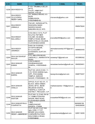 S.NO. NAME ADDRESS E-MAIL PH.NO.