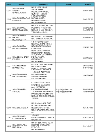 S.NO. NAME ADDRESS E-MAIL PH.NO.
