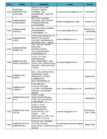 S.NO. NAME ADDRESS E-MAIL PH.NO.