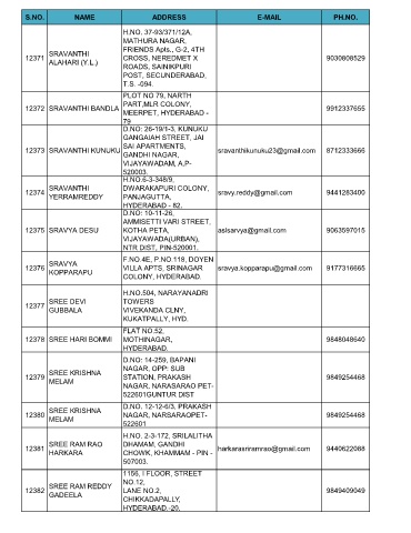 S.NO. NAME ADDRESS E-MAIL PH.NO.