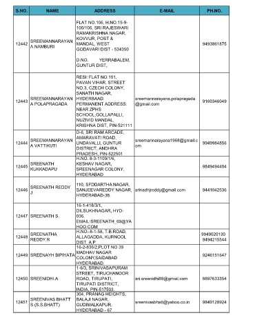 S.NO. NAME ADDRESS E-MAIL PH.NO.