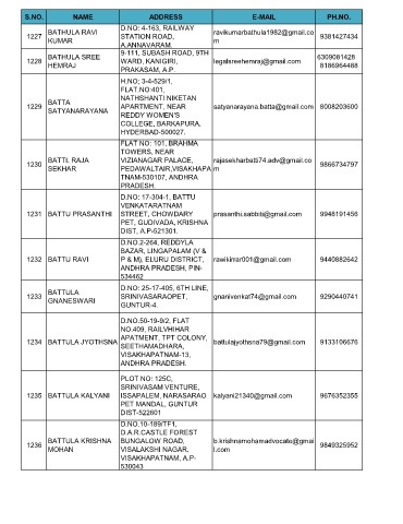 1235 BATTULA KALYANI ISSAPALEM, NARASARAO kalyani21340@gmail.com 9676352355