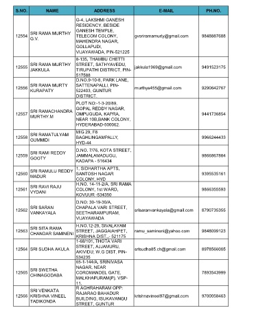 S.NO. NAME ADDRESS E-MAIL PH.NO.