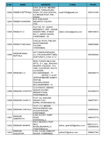 S.NO. NAME ADDRESS E-MAIL PH.NO.