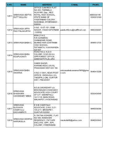 S.NO. NAME ADDRESS E-MAIL PH.NO.