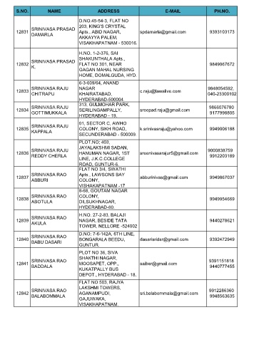 S.NO. NAME ADDRESS E-MAIL PH.NO.