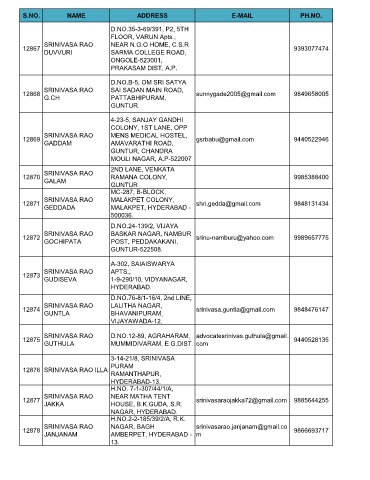 S.NO. NAME ADDRESS E-MAIL PH.NO.