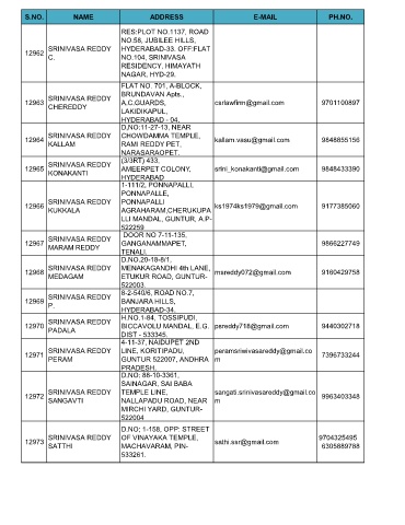 S.NO. NAME ADDRESS E-MAIL PH.NO.