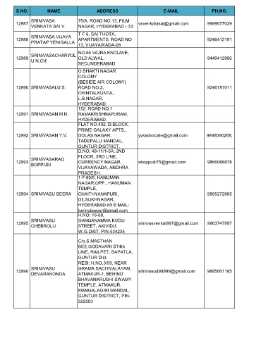 S.NO. NAME ADDRESS E-MAIL PH.NO.