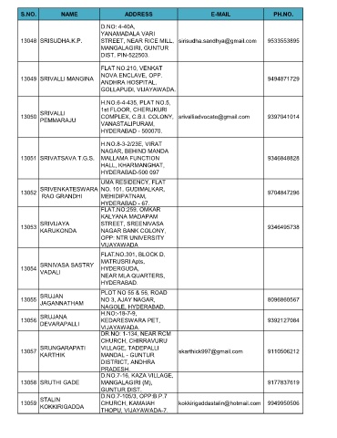 S.NO. NAME ADDRESS E-MAIL PH.NO.