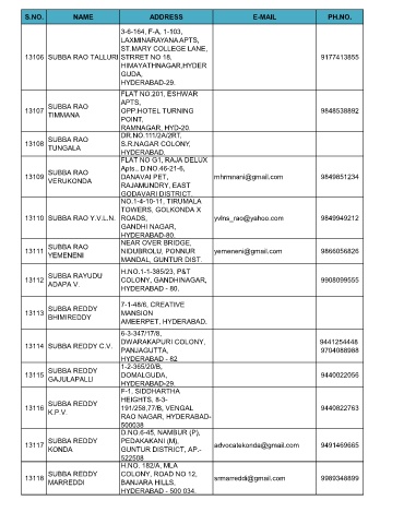 13110 SUBBA RAO Y.V.L.N. ROADS, yvlns_rao@yahoo.com 9849949212
