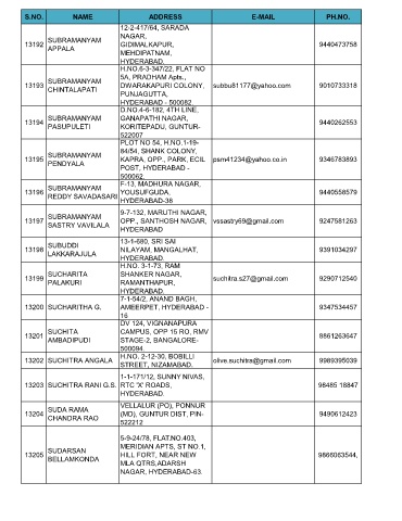 S.NO. NAME ADDRESS E-MAIL PH.NO.