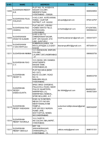 S.NO. NAME ADDRESS E-MAIL PH.NO.