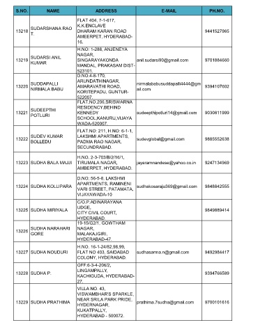 13227 SUDHA NOUDURI FLAT NO 403, SAIDABAD sudhasarma.n@gmail.com 9492984417