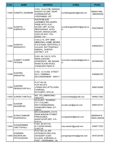 S.NO. NAME ADDRESS E-MAIL PH.NO.