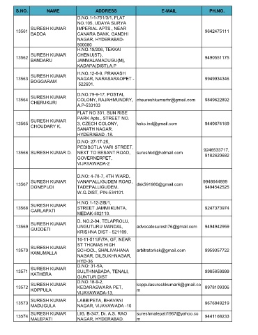 S.NO. NAME ADDRESS E-MAIL PH.NO.