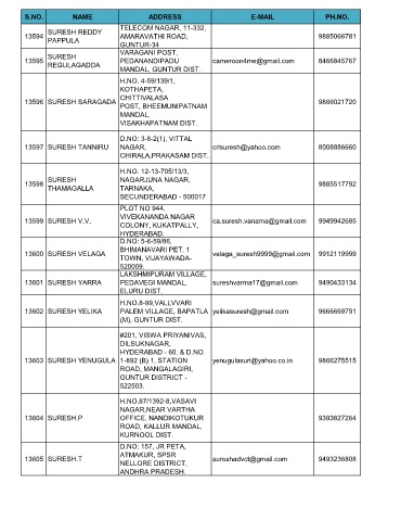 13603 SURESH YENUGULA 1-892 (B) 1, STATION yenugulasuri@yahoo.co.in 9866275515