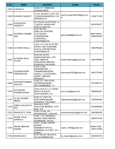 13693 SUSHMA YAGANTI 10,BAGHLINGAMPALLY,HY sushma.yaganti2012@gmail.co 9704715109