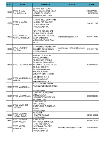 S.NO. NAME ADDRESS E-MAIL PH.NO.