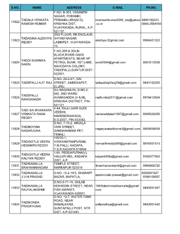 S.NO. NAME ADDRESS E-MAIL PH.NO.
