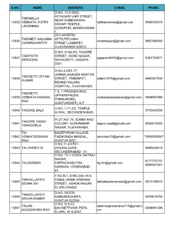 S.NO. NAME ADDRESS E-MAIL PH.NO.