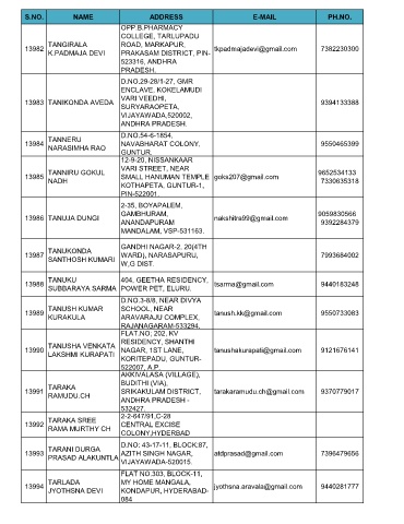 S.NO. NAME ADDRESS E-MAIL PH.NO.