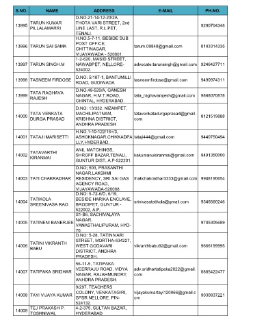 14001 TATAJI MARISETTI ASHOKNAGAR,CHIKKADPA tataji444@gmail.com 9440750494