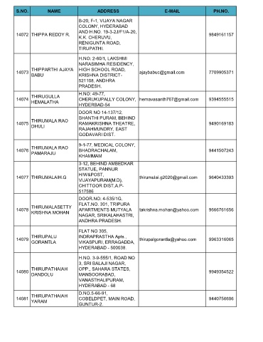 S.NO. NAME ADDRESS E-MAIL PH.NO.