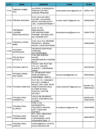 14152 TIRUMALA RANI M.S. VENKATESWARA BALA mstirumalarani310@gmail.com 9848235240