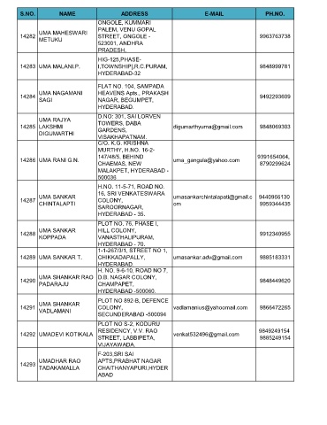 S.NO. NAME ADDRESS E-MAIL PH.NO.
