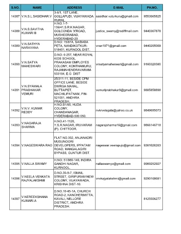 S.NO. NAME ADDRESS E-MAIL PH.NO.