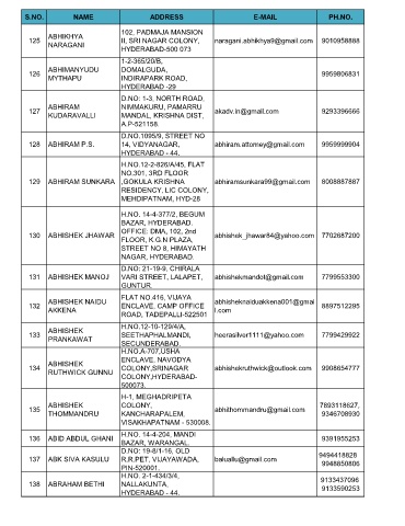 S.NO. NAME ADDRESS E-MAIL PH.NO.