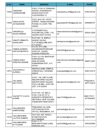 S.NO. NAME ADDRESS E-MAIL PH.NO.