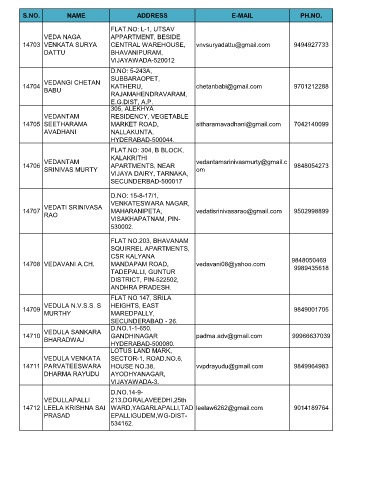 S.NO. NAME ADDRESS E-MAIL PH.NO.
