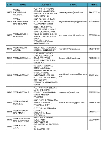 14742 VEERA REDDY P. HYDERABAD - 500 004. papellugariveerareddy@yahoo.c 9848716261