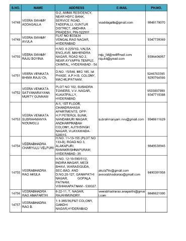 S.NO. NAME ADDRESS E-MAIL PH.NO.