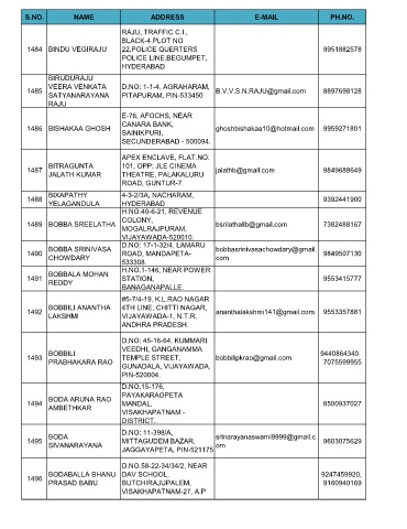 1484 BINDU VEGIRAJU 22,POLICE QUERTERS 9951882578