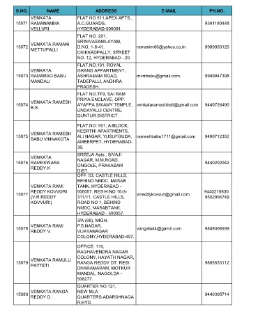 S.NO. NAME ADDRESS E-MAIL PH.NO.