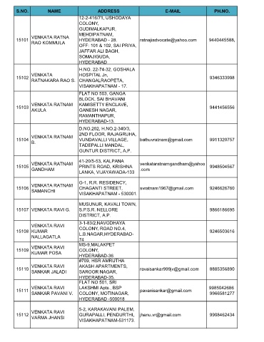 S.NO. NAME ADDRESS E-MAIL PH.NO.