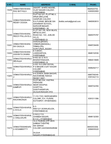 S.NO. NAME ADDRESS E-MAIL PH.NO.
