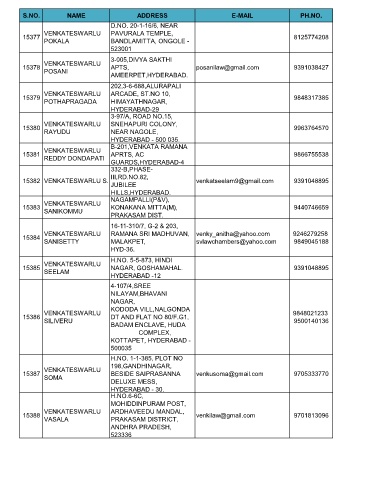 S.NO. NAME ADDRESS E-MAIL PH.NO.