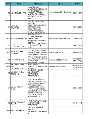 S.NO. NAME ADDRESS E-MAIL PH.NO.
