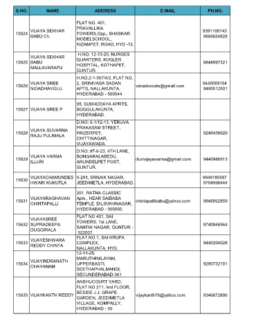 S.NO. NAME ADDRESS E-MAIL PH.NO.