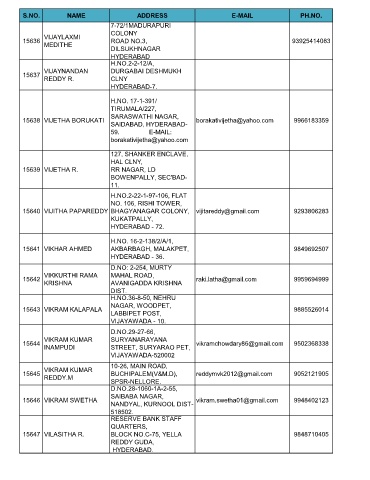 15640 VIJITHA PAPAREDDY BHAGYANAGAR COLONY, vijitareddy@gmail.com 9293806283