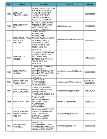 S.NO. NAME ADDRESS E-MAIL PH.NO.