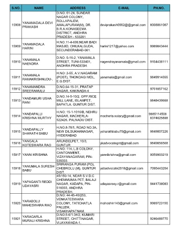 S.NO. NAME ADDRESS E-MAIL PH.NO.