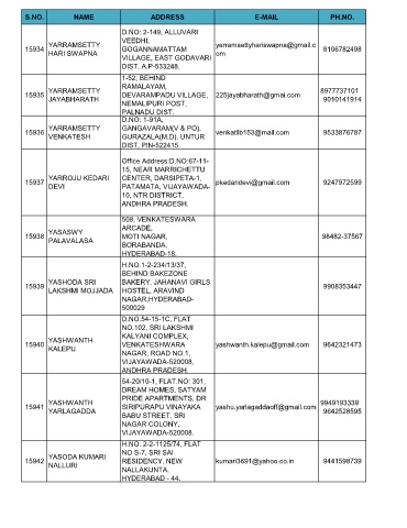 S.NO. NAME ADDRESS E-MAIL PH.NO.